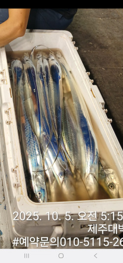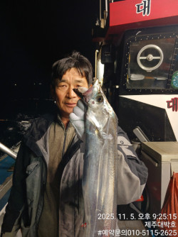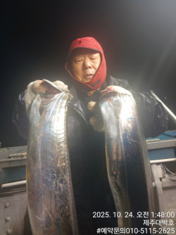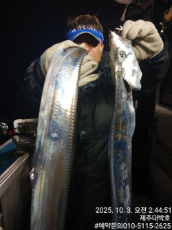 10월 31일 금요일 갈치낚시 조황입니다ㆍ잔잔해진 제주바다에 구름이 내려앉아 갈치낚시 하기에좋은 날씨속에 다녀왔습니다ㆍ26도 정도의 수온이 일주일정도 하락하면서예민한 입질에 힘들었지만바다속이 안정되면서 다시 제주바다가조사님들께 묵직한 손맛을 전해주고 있습니다ㆍ용가리급을 노리시는 조사님들은생미끼를 평상시보다 조금 크게 썰어 준비하시고기다리는 시간도 좀 더 주어서가을 제주바다가 내어주는 대박 손맛 보시길 바랍니다ㆍ오늘은 어제 이동후 입질이 좋았던 포인트로 진입하여초저녁부터 좋은 씨알들을 시작으로 대박1호 장원은 얼음녹이고 쿨러도장 조황이며대박2호도 4분과 함께 출항하여 풍성한 제주바다 갈치조황으로제주대박1호 2호 다녀왔습니다ㆍ몇자리씩 여유있으니 예약주시면 함께 하실수 있습니다ㆍ(소수인원도 날씨만 좋으면 출조하오니 함께 하실수 있습니다)010-5115-2625=1호010-9887-7383 =2호갈치 손질 및 진공포장은 철수길에 출조 항구에서(냉장 탑차) 대기하고 있는#(성숙이네수산010-5855-9596)에말씀주시면 ㆍㆍㆍ(한방에 해결됩니다) 밴드초대 https://band.us/@daebakfishing홈페이지 https://jejudaebak.sunsang24.com○(사무장=선주) 운영하여 고객 응대 100% ○제주대박1호 와 제주대박2호(왕성호)는=같은 항에서 출항하며=같은 시간에 출항,입항=같은 픽업(비행기 및 배편)도 동일=같은 포인트 공유합니다ㆍ ○제주대박1호(대박호)(수협): 0010-8700-2626(송승필) ◎제주대박2호(왕성호)(수협): 0010-9887-7383(송승필) ○공지사항○필독(아래)(실시간예약)누르시면 (공지)내용 있습니다.○제주대박1호(대박호)9.77톤=12석)○제주대박2호(왕성호)(9.16톤)●두벌채비 바로 시작(15단까지 허용)●1호/2호 대포 무료 사용 가능☎예약문의 :010-5115-2625(1호) 예약문의 : 010-9887-7383(2호)☞30년 제주 토박이 선장님(자선장)을 모시고 제주대박호1와 2호는 포인트를 공유합니다. ☞출항지: 제주시 애월읍 하귀1리 1624-7 ※제주대박1호※ 갈치(12석 9.77톤)●출항(16시)<--->철수(06시 전,후) (15시까지 제주공항 도착) (10시이후 항공권 발급) (공항픽업:15시30분(제주대박호 버스:(1)번 대형 주차장) (완도항<=>제주항 픽업합니다(15시 )) (완도항(09시30분 출발)==>제주항 도착(12시10분) (제주항 ==>완도항(08시30분 출발)●선사지급:자동봉돌투척기 무료사용(안전은 본인책임) 아이스박스,팽창식 구명조끼,석식,야식,조식,음료,생수,꽁치 ●임대는 예약시 문자보내시고 회신 확인바랍니다. *전동릴+낚시대+집어등+기둥줄+바늘=합계 3만원 *파손/분실시 비용이 발생할수 있습니다.●밴드 바로가기 https://band.us/@daebakfishing ☞ 자리배정진행☞ 우선배정 순위(2025년 6월20일부터 시행)① 최우선: 3일 이상 연박자(일렬배정)② 우선 : 단체(4인부터) 일렬배정☞예약후, 입금후 (성명/예약일) 문자로 꼭 부탁드립니다. ☞예약취소는 반드시 문자나 전화로 취소 바랍니다. ☎예약문의 :010-5115-2625 ●입금요청 문자 발송후 전화나 문자없으면 자동취소됩니다. (밴드(공지)홈페이지(알림판) 필독후 예약바랍니다) ☞택배&가공&연박시 냉동(무료)가능 (갈치 진공포장:가격인하 ((3500원/4500원))(kg) (사무장님께 말씀주시면 철수때 항구로 직접 가지러 가서 작업해 드립니다(성숙이네 수산 010-5855-9596)【예약 전 필독사항】☞실시간예약란에 (예약완료는= 입금완료)입니다. 본인이 입금대기중일경우 선입금자가 있을경우 선입금자부터 예약완료 됩니다. ☞예약 및 환불 규정 *7일이내 취소시 100%환불 *3일이내 취소시 50%환불 *출조전일 및 당일: 환불 없음. ☞신분증 미지참시 승선이 불가하오니 지참후 승선. ☞멀미약은 배에서 지급하지 않습니다.☞선내 주류 반입 및 음주 절대 금지☞임대는 예약시 꼭 말씀해주시고 파손/분실시 비용청구○숙소 문의 관련 공지합니다 ○4월1일부터숙소 예약하실때 전화통화로 하시면 됩니다ㆍ통화하실때○꼭! 대박호○라고 말씀해주셔야 ○할인가로○ 예약 하실수 있습니다ㆍ* 문의전화 (호텔) 064-800-4000* 위치 : 제주특별자치도 제주 하귀1리 544-2 (일주서로 7113)- 하나로마트 하귀점 맞은편▶ 더 스테이 센추리호텔 보기(상세정보)http://gjr.kr/0648004000밴드초대 https://band.us/@daebakfishing홈페이지 https://jejudaebak.sunsang24.com